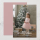 A child, in a charming, festive pink tutu, stands before a Christmas tree adorned with white ornaments, with a look of wonder, in a modern, minimalist home bathed in soft muted pinks, greys, and whites. 'Holiday Wishes' is elegantly rendered in brush script typography, below, completing this magical holiday scene. Please note: This image is a sample. You must replace it with your own favourite Christmas photo. The finished product is available in print or as a digital download, or both