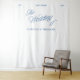 An elegant wedding backdrop banner featuring a beautiful handwritten script and clean serif typography in classic blue. Perfect as a photo booth backdrop or ceremony background. All text is fully customizable — edit the names, date and location to match your wedding. Part of the coordinated wedding collection "Florence" — explore matching pieces across the full suite. Mockups for this design were created using Midjourney AI.