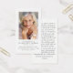 This memorial poem card can be given as a keepsake at a Celebration of Life or funeral service or sent as a special tribute to those who were unable to attend. This card can be personalised with a favourite photo and your choice of prayer or poem. The photograph is for illustrative purposes and can be changed to one of your own.