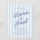 Modern Minimalist Coastal Blue Stripes Wedding Invitation