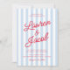 Modern Minimalist Coastal Red Blue Stripes Wedding Invitation