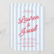 This is a Modern Minimal Minimalist Coastal Red Blue White Stripes Wedding Invitation!