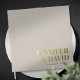 This elegant wedding guest book is the perfect way to capture the memories of your special day. Designed with a sleek, modern aesthetic, it features bold gold foil accents that make the names of the bride and groom stand out in stunning style. The wedding date is tastefully displayed along the spine, giving the book a unique, contemporary touch. Below the names, the venue location is subtly included, adding a refined personal detail that makes this guest book not just a keepsake, but a piece of art to treasure for years to come.