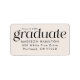 Add a personalised touch to your envelopes with our modern graduation return address labels. The labels display "graduate" in black italicised modern lettering with a cream background or colour of your choice. Personalise the simple graduation return address labels by adding the graduate's name, graduation year, and address.