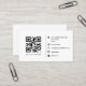 White or custom, modern, elegant and professional business card design with template fields for name, company name/title, logo QR code (photo or other graphic) and contact information including custom icon. Only upload icons that you have permission to use. Use the resize tools to change the background color, move and resize elements.