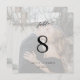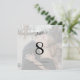 Classy calligraphy script simple chic black and white text overlay bride and groom names and photo personalised wedding square table number. +++++++++ Please note that to order different numbers you need to customise them and put them in the shopping cart one by one (one card with no 1, another with no 2, etc).