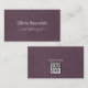Embrace the essence of elegance and professionalism with this stunning minimalist business card featuring an aubergine textured background with silver grey text. The front of the card showcases a clean and contemporary design, displaying the name and profession in a sleek and stylish font, while the back provides space for a QR Code so clients have access to all all your contact information, and social media links.
