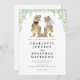 Delight your guests with this playful and unique dinosaur-themed wedding invitation! Featuring a hilarious T-Rex bride and groom, this fun design is sure to bring a smile to everyone’s face. The charming illustrations of the dino bride and groom created in warm brown tones, are set against a backdrop of lush eucalyptus foliage in vibrant greens, creating a whimsical and inviting feel.