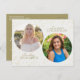 This design features a double graduation graduate grad party invitation, with a 2 two photo picture template, a modern invitation announcement, with a simple elegant class of style, with gold confetti stylish typography, a fancy script calligraphy text font, a trendy minimal minimalist congrats, a simple landscape style, great for high school college commencement, great for any university school student senior