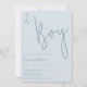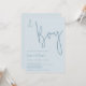 This minimalist boy baby shower invitation template, features a modern handwritten font in a dusty blue.