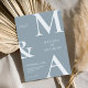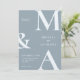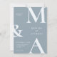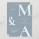 Modern Minimalist Dusty Blue Wedding Invitation. Features bold monogram typography and minimal graphic design. Personalise text with all the details of your special day.