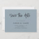 A simple modern save the date card. Personalise this minimalist dusty blue design to have your personal details and message.