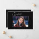Clean, trendy, modern and elegant "4 Photo" graduation announcement cards, featuring design elements of modern text with a unique calligraphy ink script. The graduate's photos are accented with a delicate & minimalist gradient boarder. The back of the card offers personalised text spaces for information about your graduation. Black & White or easily customise the background to match your school's primary colour or any colour of your choice. Perfect for the high school, college and university grad student seniors.