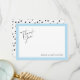 These flat cards have a fun confetti pattern in black on the back. The front features a handwritten style font and custom names at the bottom right corner and an elegant blue border.