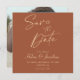 Stylish and exquisite, this Modern Minimalist Elegant Wedding Photo Save the Date card is the perfect way to announce your upcoming celebration in style. Featuring a sleek and simple design, this wedding save the date blends contemporary aesthetics with a touch of elegance. The use of terracotta colour palette adds a warm and inviting feel to your announcement, making it stand out from the rest. The calligraphy script typography brings a touch of sophistication, creating a timeless look that complements your wedding theme effortlessly. Choose this minimal save the date card to showcase your favourite moments captured in a way that feels both personal and chic, setting the tone for a trendy and elegant wedding celebration.