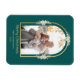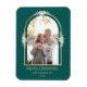 This is a modern minimalist floral arch one photo customisable Holiday Card in forest green colour.