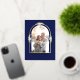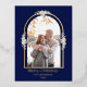 Modern Minimalist Floral Arch Photo Royal Blue Foil Holiday Postcard