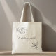 Custom-designed bridesmaid tote bag featuring modern black and white foliage line art design.