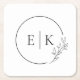Modern Minimalist Foliage Initials Wedding Square Paper Coaster