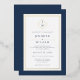 Modern Minimalist Formal Classic Initial Blue Foil Invitation