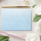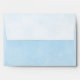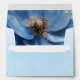A gorgeous minimalist blue and gold color Poppy adorns the inside of this wedding invitation envelope.