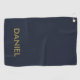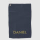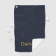 Modern minimalist gold text navy blue golf towel