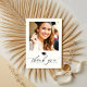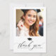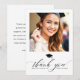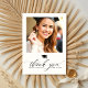 Express gratitude with understated elegance using this Modern Minimalist Graduation Party Photo Thank You Card. Featuring a clean white background and black script typography, this design combines a photo panel (showcase a cherished graduation memory) with customisable fields for the graduate’s name and Class of 2025. The minimalist layout includes a subtle graduation cap icon and a heartfelt ‘Thank You’ header, ensuring your message remains on back. Perfect for post-celebration appreciation, this card is available as a printed keepsake. Sleek, sincere, and effortlessly chic!