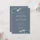 Introducing our modern minimalist wedding invitation in a sleek and sophisticated slate grey colour. The invitation features a delicate sprig of greenery on the top left and bottom right, adding a touch of nature to the minimalist design.