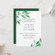 Modern watercolor botanical greenery leafy branches on white and hunter green backgrounds, wedding invitation. Customise text, font style, colour and size.