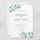 The sleek and sophisticated black text complements the minimalist aesthetic of the invitation, while the couples names are highlighted in the same shade of green as the greenery, adding a personalised touch to the design. The modern font used for the text lends a contemporary feel to the invitation, making it perfect for couples who appreciate clean lines and simple yet sophisticated designs.