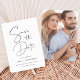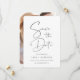 Invite guests to mark their calendars for your wedding with these modern and minimal save the date cards in classic black and white. Simple design features "save the date" in casual handwritten script, with your names, wedding date, location, and website beneath. Add a favourite portrait-orientated engagement photo to the back.