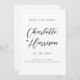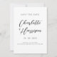 A simple handwritten script modern minimalist black and white typography save the date. Available in print, as a digital download, or both.