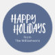 Modern Minimalist Happy Holidays Simple Blue Name Classic Round Sticker