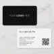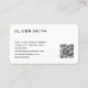 Create your own professional business card with this simple and stylish design. A double-sided template personalised with your logo, name, address, contact information, and a scannable QR code. All the text can be customised or deleted, so you can include the information you want. Printed colours: black and white. Choose from a range of paper textures and weights.