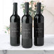 Minimalist personalised wedding wine bottle labels featuring modern typography monogram initials and name in matte black colour design.