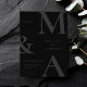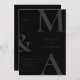 Modern Minimalist Matte Black Wedding Invitation. Features bold monogram typography and minimal graphic design. Personalise text with all the details of your special day.