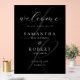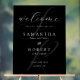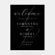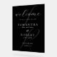 Black and white wedding welcome sign featuring modern minimalist typography design.