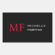 Modern Minimalist Monogram Initial Plain Red Black Rectangular Sticker