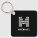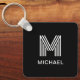 Modern Minimalist Monogram Stylish Black & White Key Ring