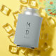 Make your wedding day even more special with these elegant minimalist monogram can coolers with your initials, date, name, and saying in a modern typography design on a light green grey backdrop.