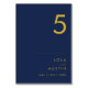 This modern minimalist navy blue | gold table number is perfect for your classy boho wedding. Its simple, unique abstract design accompanied by a contemporary minimal script and a dark navy blue colour palette gives this product a feel of elegant formal luxury while staying simplistic, chic bohemian. Keep it as is, or choose to personalise it with artwork or graphics of your choice!
