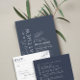 A minimalist wedding invitation in navy blue for the ultimate chic look, Names are displayed big on the left side and wedding information on the right side. Other colours available in the collection. If you need any matching designs that are not in the collection or need any help, please let me know (Maria). Happy to help!!