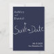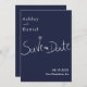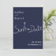 This elegant navy blue wedding save the date is perfect for a modern wedding. the simple design features elegant white calligraphy on a navy blue background.