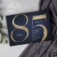 Modern minimalist 85th birthday party invitation features stylish faux gold glitter number 85 and your party details in classic serif font on navy blue background, simple and elegant, great surprise adult milestone birthday invitation.