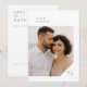 Invite elegance with our Modern Minimalist One Photo Save The Date. This design showcases couple's in a joyful photograph, highlighting a minimalist style that blends modern aesthetics with classic elegance.