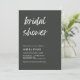 This invitation embodies the essence of modern minimalism, blending clean lines with a touch of playfulness. The standout feature is the vibrant white handwriting font that spells out "Bridal Shower," injecting a sense of excitement and modernity into the design. The remaining text is presented in crisp white block fonts, ensuring clarity and a timeless appeal that perfectly complements the invitation's sleek and minimalistic aesthetic.
