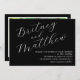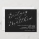Modern minimalist photo wedding invitation in black and white with elegant calligraphy script for bride and groom's names.