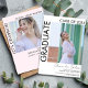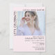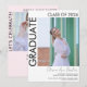 Modern Minimalist Two Photo Graduation Announcement & Grad Party Invitation with black text on white background. Back side is a lavender blush pink with black text