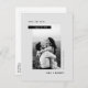 A sleek frame of the palest soft grey feels modern and minimal around your portrait engagement photo alongside boldly arranged black and white, simple custom text. Personalise this card with more information using the custom text boxes on the back.
