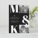 Modern minimalist wedding design is all about simplicity and elegance. It emphasizes clean lines, neutral palettes, and a focus on the essentials. This design in trendy black colour uses minimalist style typography with customisable couple photos and bold monograms. Whether you're planning an intimate ceremony or a large reception, modern minimalist design is a perfect choice for couples who want to create a timeless and sophisticated atmosphere for their wedding celebration.